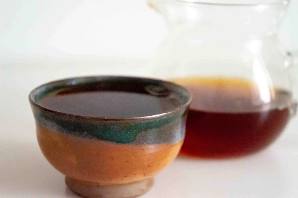 La liqueur de ce thé dégage un parfum légèrement amidonné qui ressemble aux épluchures de pomme de terre. Un parfum assez végétal avec une pointe de vanille et de café assez agréable. Le rouge de la liqueur est profond, envoutant et translucide. Lorsque je fais tourner l’infusion dans le pot de réserve, je remarque une liqueur assez épaisse qui laisse des traces presque grasses sur les parois du verre.